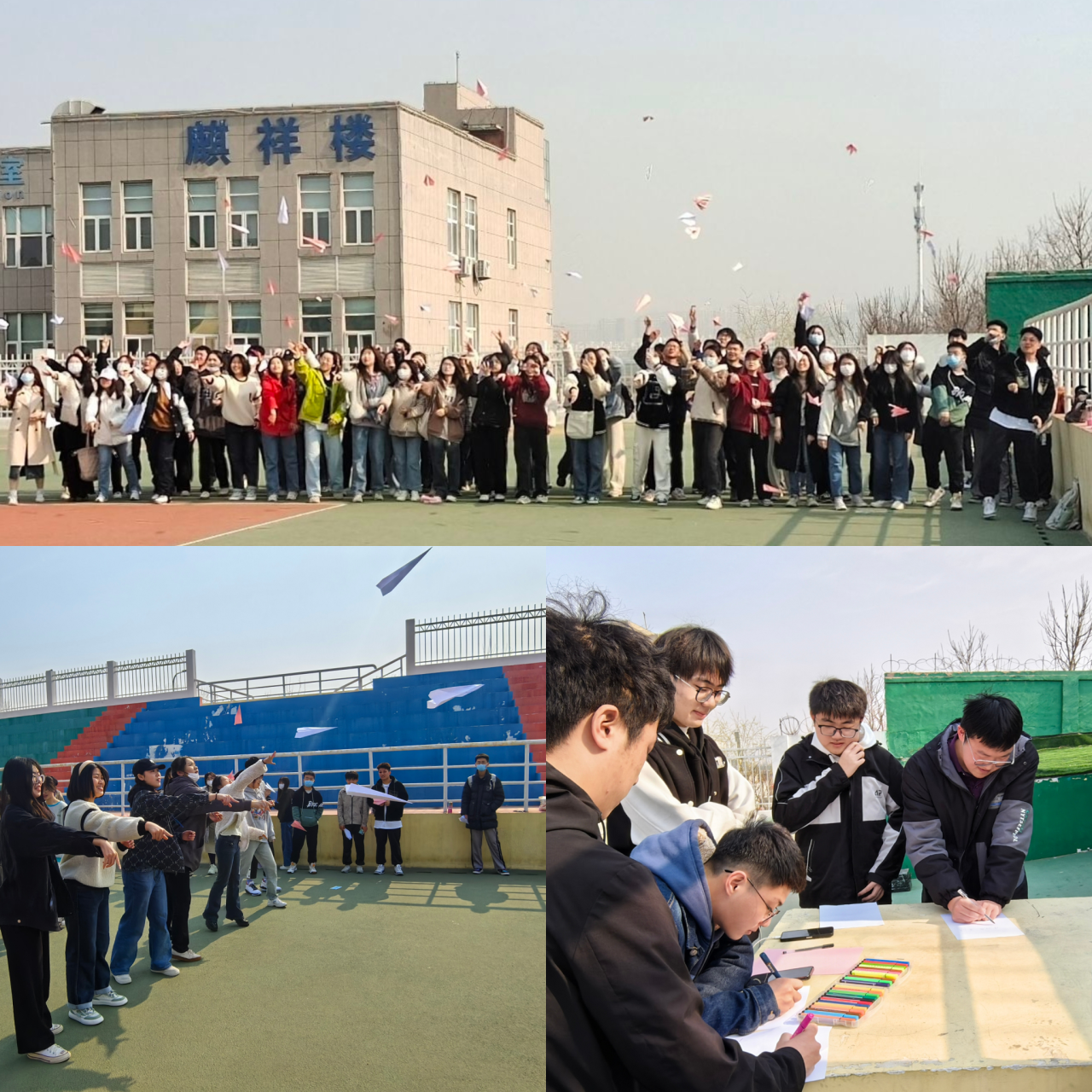319日上午,“抒写希望,放飞梦想”纸飞机活动在东山操场举行。活动现场,同学们热情高涨、劲头十足,纷纷将自己的愿望、祝福、烦恼和困惑通过文字和绘画的形式寄于纸飞机上,随后相继放飞自己的“希望”飞机。此次活动既有效释放了同学们的心理压力,也唤醒了大家积极向上的人生态度。纸飞机的飞翔象征着环境学子在充满生机的春天里启航再出发。